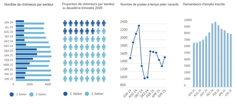 Nach einem kräftigen Anstieg im Dezember 2024, reduzierte sich die Arbeitslosenrate im Wallis in ersten sechs Monaten 2025 von 3.7% im Januar auf 2.8% im Juni. Auch die Zahl der offenen Stellen reduzierte sich im ersten Halbjahr deutlich von 1’700 auf 1’552 Die Zahl der Stellsuchenden sank ebenfalls von 9’968 auf 8’114. Insgesamt war aber die Arbeitslosenquote Juni 2025 immer noch um 0.4 Prozentpunkte höher als im Vorjahr.