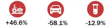 Die Kategorie «Land- und forstwirtschaftliche Produkte» erzielte mit 46.6 Prozent den deutlichsten Exportanstieg (CH: +3.9%). Bei der Walliser MEM-Industrie konnte sich gut halte. Es gab Zuwächse in «Industriemaschinen» (+10.7%, CH: -5.3%), «Rest Maschinen, Apparate, Elektronik» (+23.2%, CH: +2.7%) und «Übrige Metalle und Metallwaren» (+9.5%, CH: -4.6%). Den stärksten Rückgang verzeichnete die Kategorie «Fahrzeuge» (-58.1%), während bei den chemisch-pharmazeutischen Produkten nur die «Agrochemischen Erzeugnisse» (+7.2%, CH: 3.5%) zulegen konnten; andere Gruppen wie «Chemische Rohstoffe, Grundstoffe» (-12.9%, CH: -19.0%) und «Übrige chemische Endprodukte» (-11.0%, CH: +24.0%) waren rückläufig.
